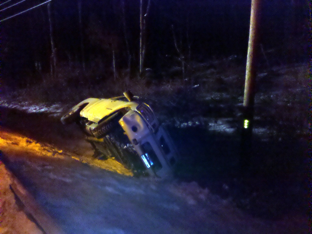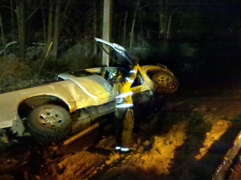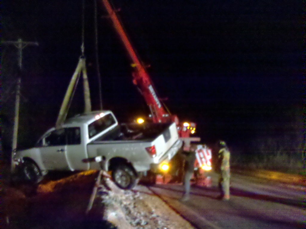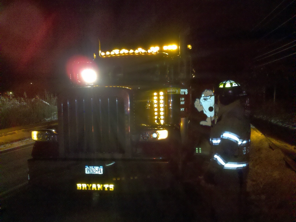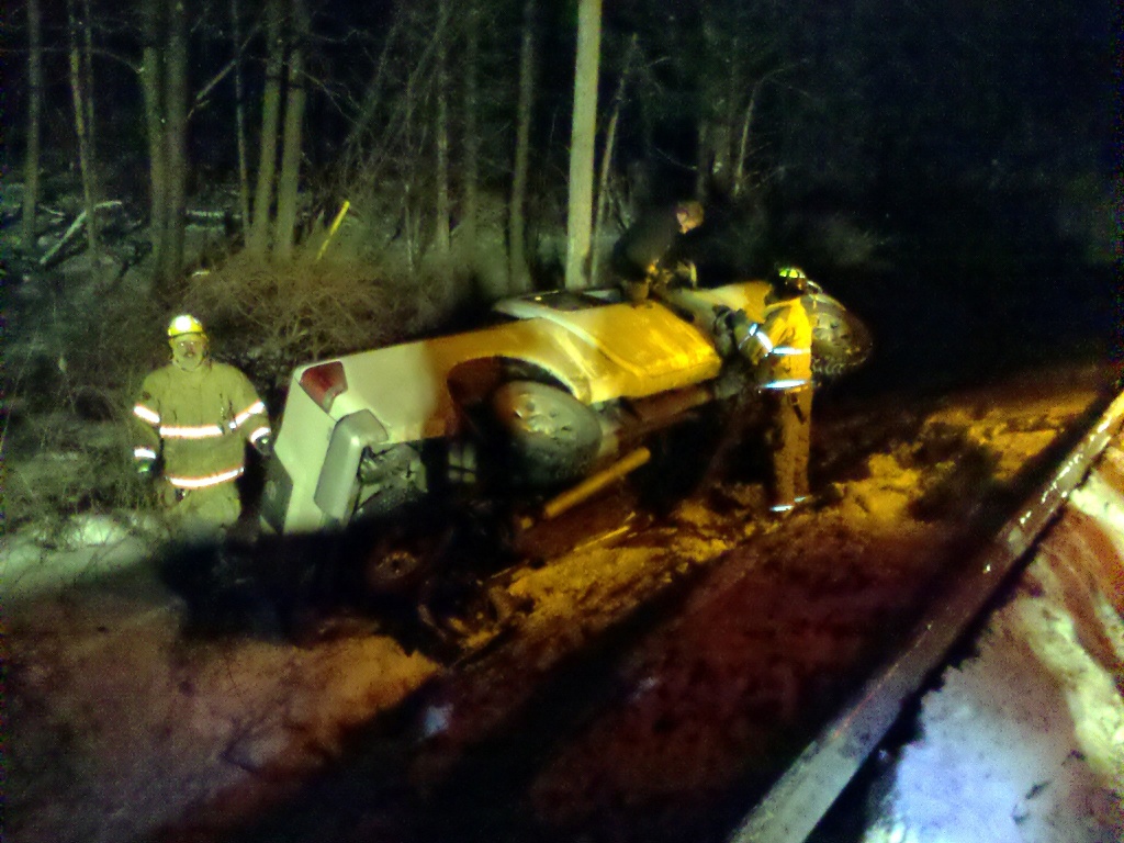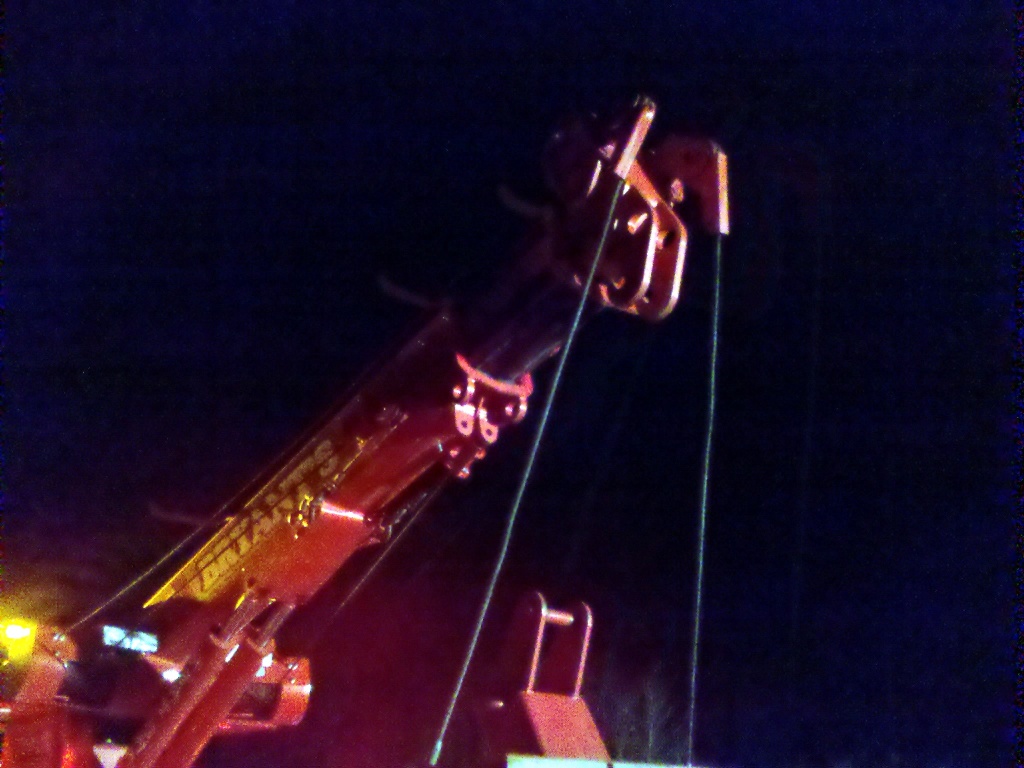An MVA that occurred right across the street from the firehouse requiring a crane to remove the vehicle from over the embankment. Apologies for the quality, taken on a cell.