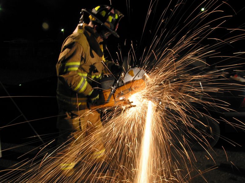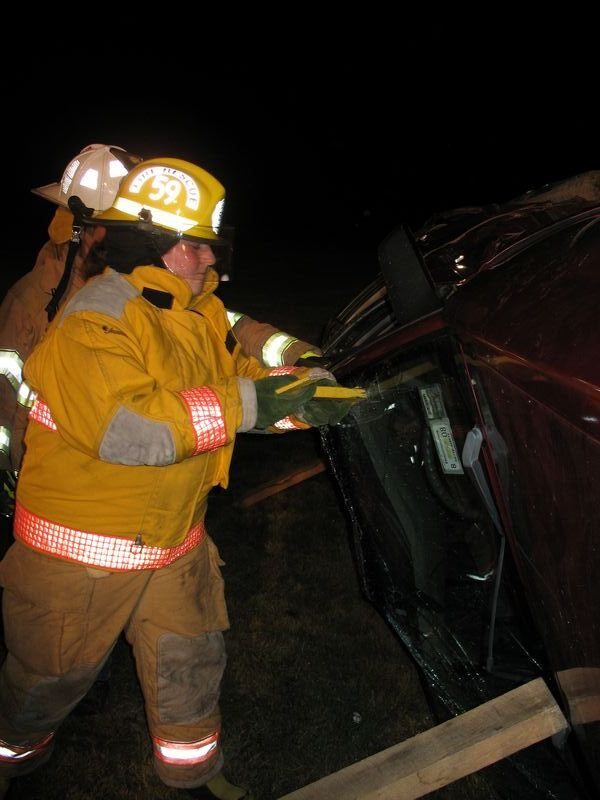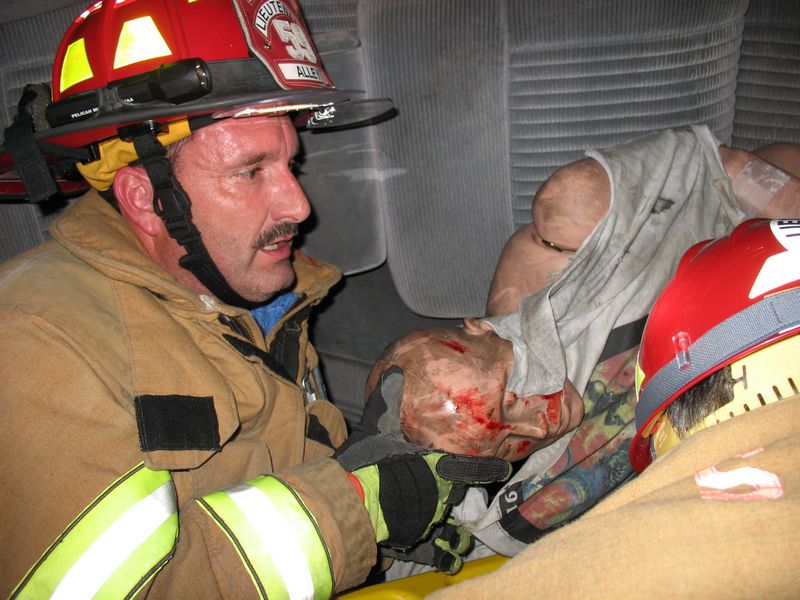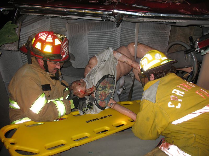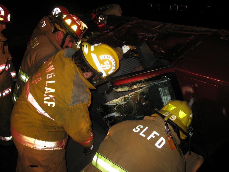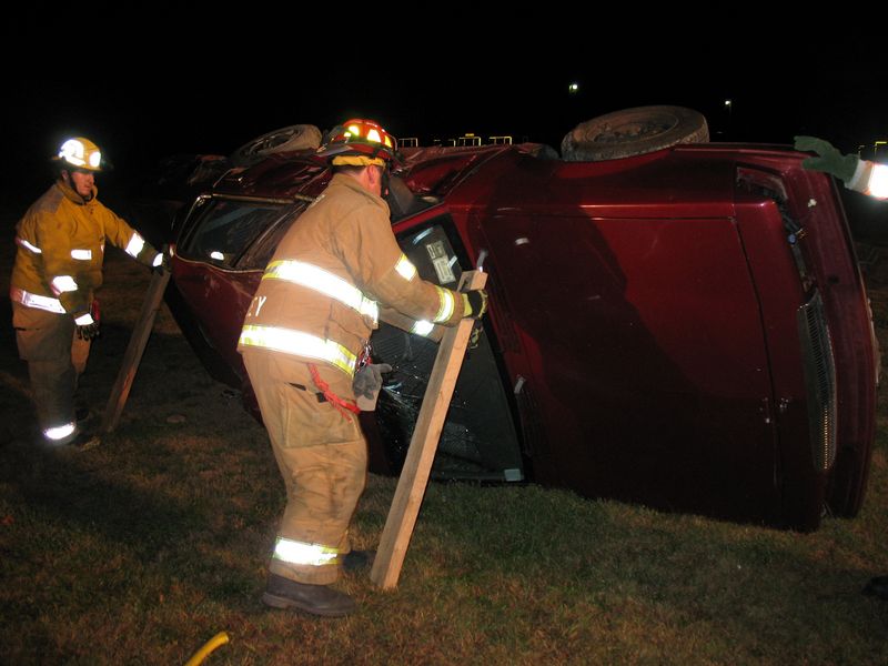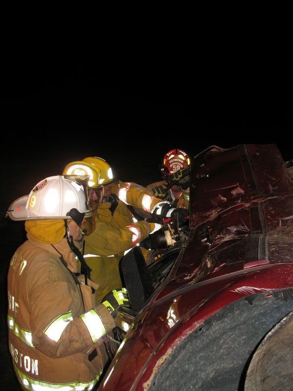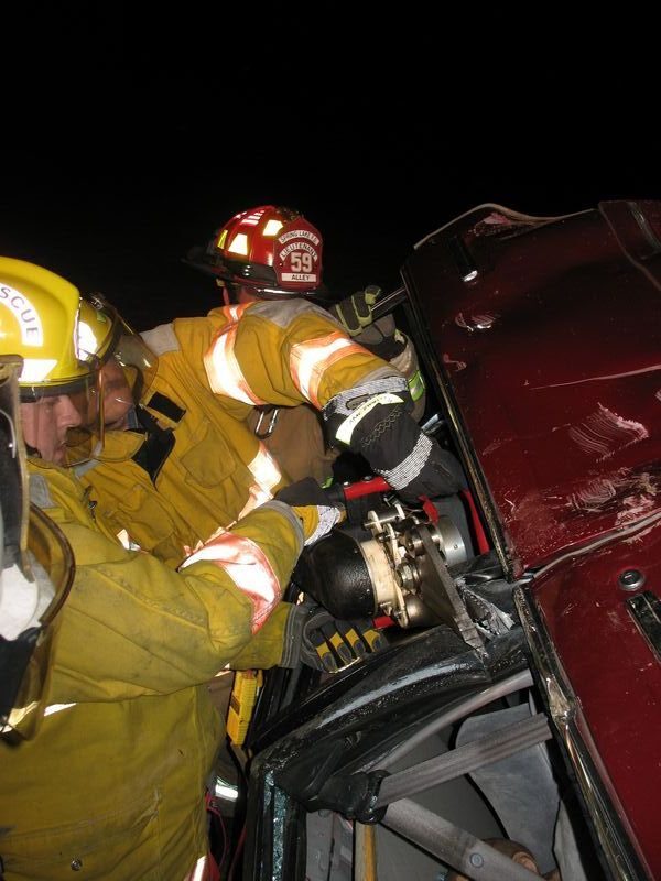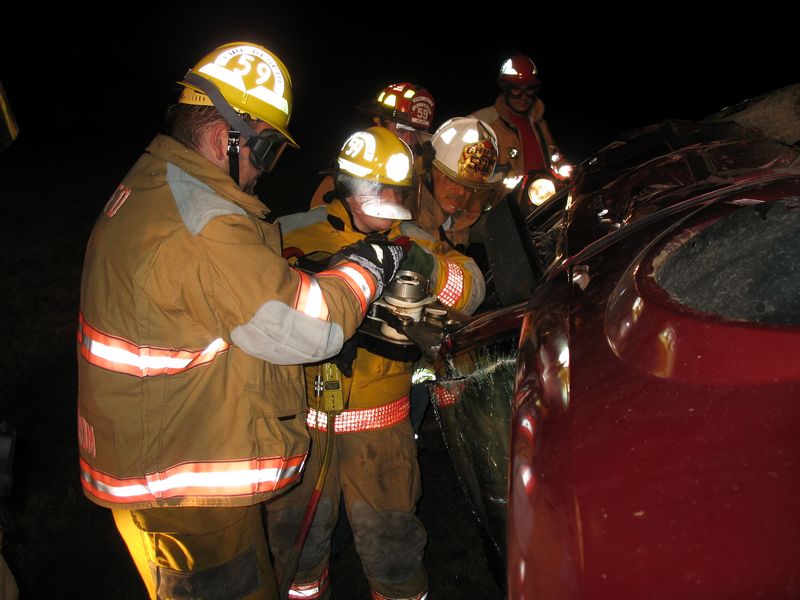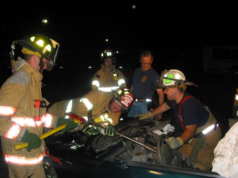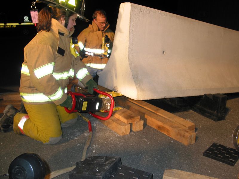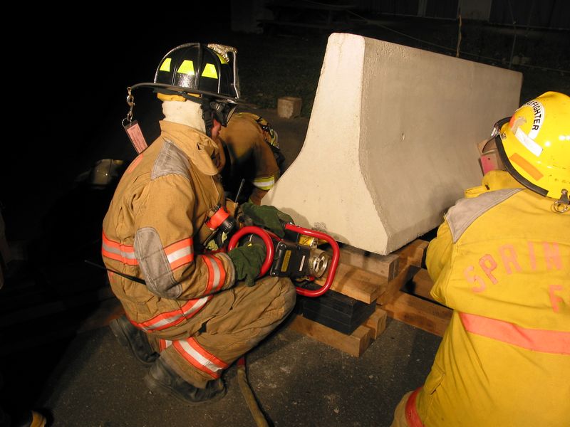 We cover a section of an interstate highway, so high-speed crashes are always possible, as well as accidents on any of the streets and roads in the district. We try to train regularly with extrication tools, and here we were assigned to raise a Jersey barrier 18″ with our available tools.
